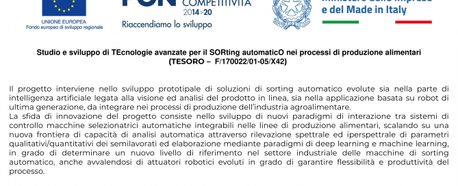 Nell’ambito del Progetto TESORO, finanziato dal MIMIT, ISS ha sviluppato un sistema visione multispettrale in grado di integrare la funzione di sorting e di controllo qualitativo di verdure affettate.